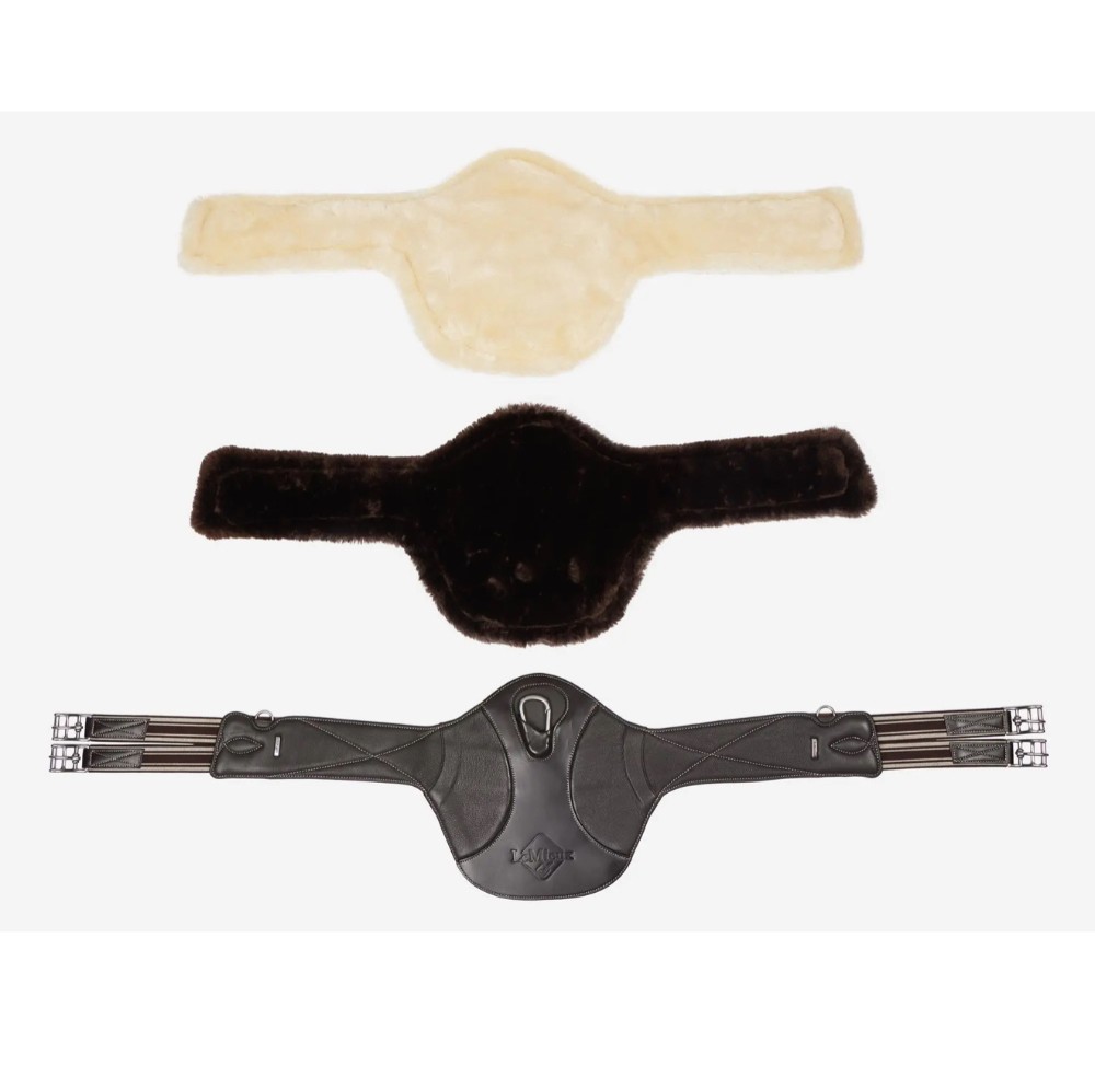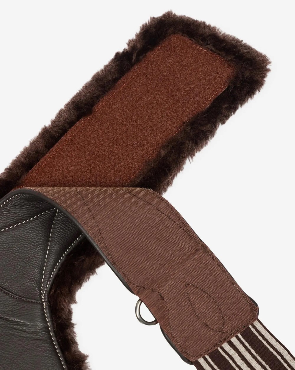 The LeMieux® Arika Simuwool Contoured Long Stud Girth is made from soft, supple, drymilled leather with a removable faux-wool lining. A reinforced leather pad at center protects your horse’s underside when jumping.