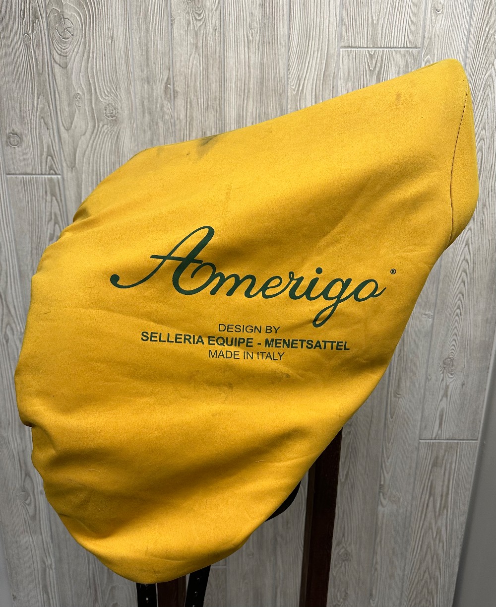 Amerigo Dressage18"Flap- 16"Dot to Dot- 5"Wool FlockedRemovable BlocksExcellent ConditionComes with Cover